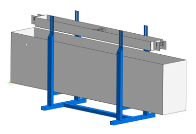 6. Двуканальная 6-метровая печь полимеризации — Использование импортных терморегуляторов компании Autonics дает возможность ступенчатого нагрева. Максимальная температура нагрева печей до 400оС. Использование термостойкой стали 09Г2С и современных огнеупорных и теплоизоляционных материалов позволило исключить температурные деформации самой конструкции, увеличить КПД полимеризационной печи, по сравнению с существующими аналогами, и увеличить производительность оборудования. Время прогрева печи до рабочей температуры составляет не более 30 минут. Для удобства и технического обслуживания печь оснащена пневматическим устройством подъема и опускания крышки печи, для ее открытия без физических усилий (вес крышки печи составляет ~150 кг). Печь установлена на станине с возможностью регулировки по высоте. Позволяет нивелировать неровности пола производственных помещений до 200 мм, а также компенсировать провисание композитной сетки в полимеризационной печи. Особая конструкция оборудования позволяет исключить стекание эпоксидно-полимерного связующего с арматурных стержней в полимеризационной печи, в результате исключается перерасход компаунда и увеличивается интервал межсервисной чистки рабочего пространства печи.